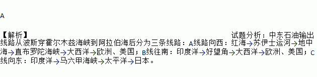 A ¡¾½âÎö¡¿ÊÔÌâ·ÖÎö£ºÖж«Ê¯ÓÍÊä³öÏß·´Ó²¨Ë¹´©»ô¶ûľ×Ⱥ£Ï¿µ½°¢À²®º£ºó·ÖΪÈýÌõÏß·£ºAÏß·ÏòÎ÷£ººìº£¡úËÕÒÁÊ¿Ô˺ӡúµØÖк£¡úÖ±²¼ÂÞÍÓº£Ï¿¡ú´óÎ÷Ñó¡úÅ·ÖÞ¡¢ÃÀ¹ú£»BÏßÍùÄÏ£ºÓ¡¶ÈÑó¡úºÃÍû½Ç¡ú´óÎ÷Ñó¡úÅ·ÖÞ¡¢ÃÀ¹ú£»CÏßÏò¶«£ºÓ¡¶ÈÑó¡úÂíÁù¼×º£Ï¿¡ú̫ƽÑó¡úÈÕ±¾¡£