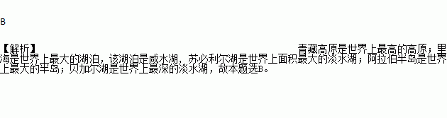 C. 阿拉伯半岛——世界最大的半岛 D. 贝加尔湖——世界最深的淡水湖