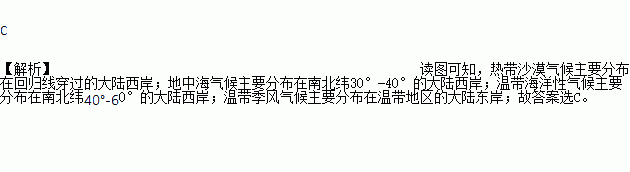 下列气候类型只分布在大陆西岸,东岸缺乏的气候类型是( ):