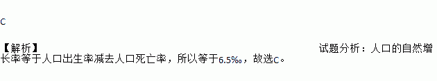 C 【解析】试题分析:人口的自然增长率等于人口出生率减去人口死亡率,所以等于6.5‰,故选C。