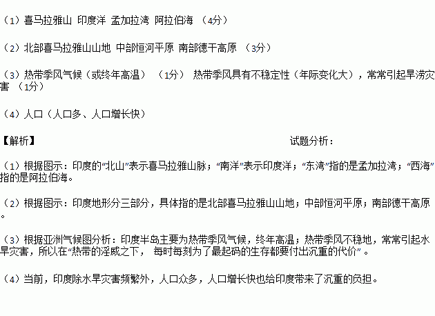 (3)印度大诗人泰戈尔有这样的描述:“我们生活在热带的淫威之下,每时每刻为了最起码的生存都要付出沉重的代价。”结合亚洲气候图,说明“热带的淫威之下”指的是什么?为什么会“为了最起码的生存都要付出沉重的代价”?