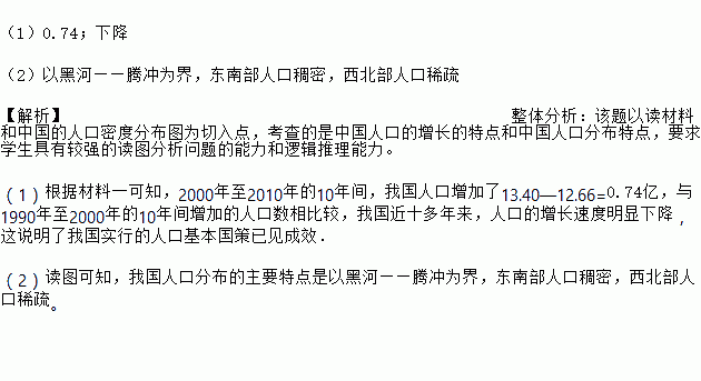 (2)根据材料二可知,我国人口分布的主要特点是________。