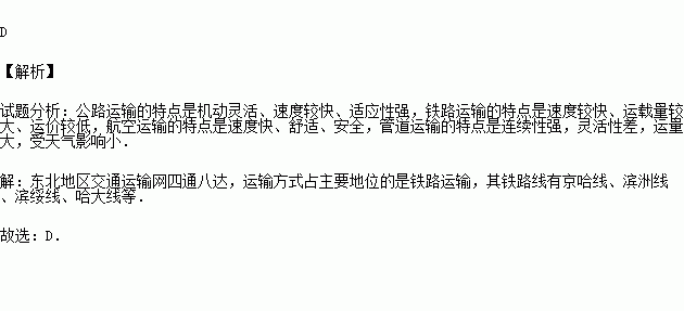 东北地区交通运输网四通八达,运输方式占主要地位的是( )