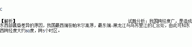 当乌苏里江上洒满阳光时,帕米尔高原上还是星斗满天,这是由于我国( )