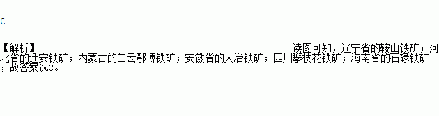 下图是“我国某矿产分布图”,此矿产可能是( )