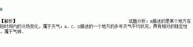某日的天气预报显示:降水概率100%,风向东南风,风力二、三级转三、四级,气温20℃/8℃。对于这次预报小明的下列理解不正确的是( )