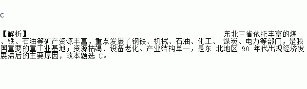 D. 资源枯竭、设备老化、产业结构单一,是东北地区 90 年代出现经济发展滞后的主要原因