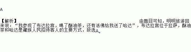 明明旅游回来说:“我参观了布达拉宫,喝了酥油茶,还有活佛给我送了哈达”,请你分析明明去的是那个地区?( )