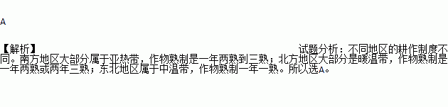 从农作物的生长期来看,哪个地区农作物可以一年三熟?( )