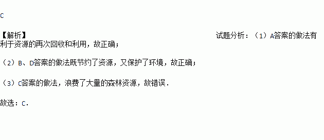 节约资源、保护资源与我们的日常生活密切相关,以下是小明的做法,错误的是( )