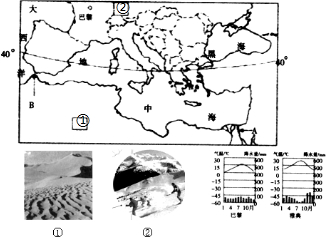 (2)读上面气温、降水量图,法国首都巴黎的气候类型是温带海洋性气候,希腊首都雅典的气候类型是地中海气候.