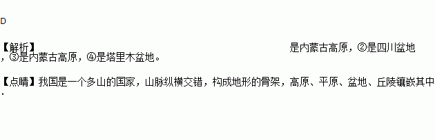我国的地形复杂多样,各具特色,对下图中①~④处地形区的判断正确的是( )