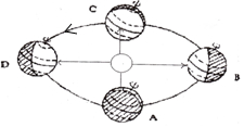 ( 3 )当地球运动至A点和C点即秋分日和春分日时,太阳直射赤道,全球昼夜等长.