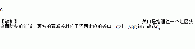 C 【解析】关口是指通往一个地区狭窄而险要的通道,著名的嘉峪关就位于河西走廊的关口,C对,ABD错。故选C。