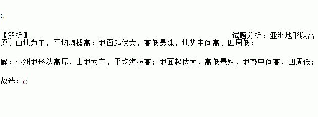 A. ÑÇÖÞÊǺ£°Î×î¸ßµÄ´óÖÞ B. ÑÇÖÞµØÃæÆð·üƽ»º£¬ÒÔ¸ßÔΪÖ÷