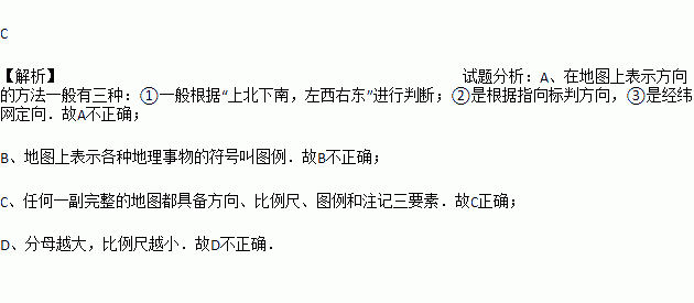 学会看地图是学习地理最重要的一种方法,下面关于地图的说法正确的是( )