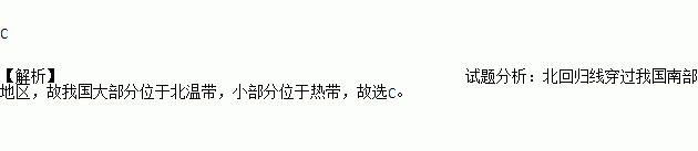 按热量带划分,我国大部分地区位于 ( )