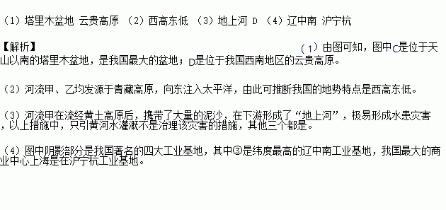 £¨2£©ºÓÁ÷¼×¡¢ÒÒ¾ù·¢Ô´ÓÚÇà²Ø¸ßÔ£¬Ïò¶«×¢Èë̫ƽÑó£¬ÓÉ´Ë¿ÉÍÆ¶ÏÎÒ¹úµÄµØÊÆÌصãÊÇ_______¡£