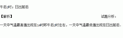 一天中陆地气温的最高值出现在_____,最低值出现在____。