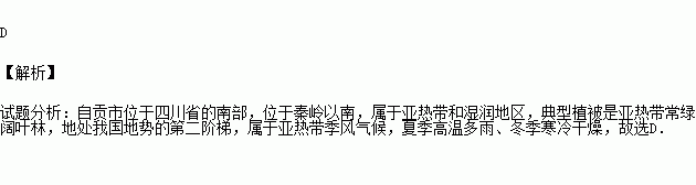 D.夏季高温多雨,冬季寒冷干燥