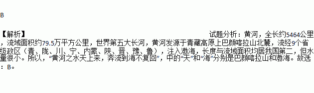 “黄河之水天上来,奔流到海不复回”中的“天”和“海”指的是( )
