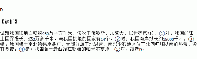 ①陆地面积约960万平方千米,居世界第3位