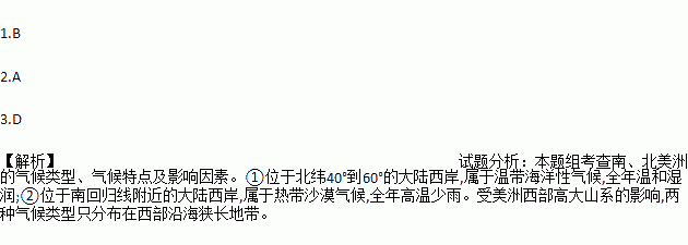 读南、北美洲两种气候类型的分布图,回答下面小题。
