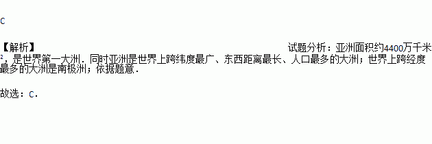 C. 世界上跨经度最多的大洲 D. 东西距离最长的大洲