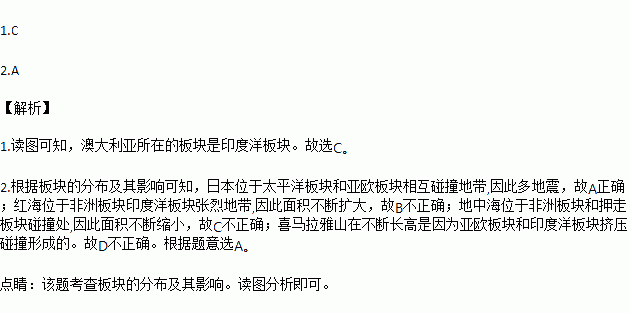 A. 太平洋板块 B. 美洲板块 C. 印度洋板块 D. 亚欧板块