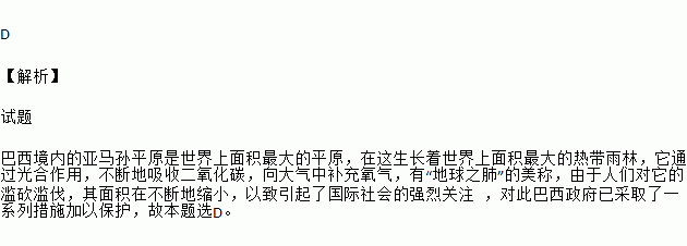 被称为“地球之肺”,并引起了国际社会的极大关注,巴西政府已采取一系列措施进行保护的是( )