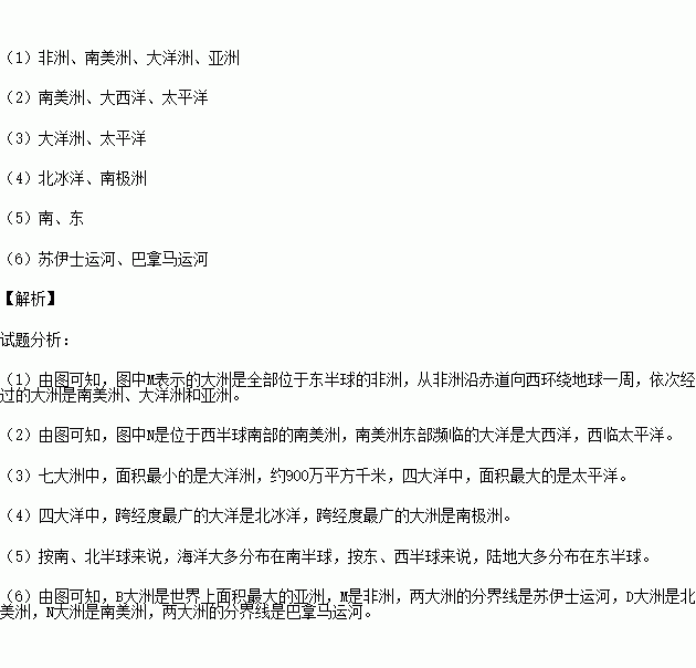 (2)N所代表的大洲是__________,该大洲东部濒临的大洋是___________,西临的大洋是__________。