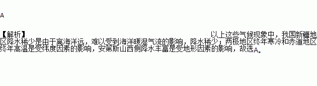 A. 我国新疆地区降水稀少 B. 两极地区终年寒冷