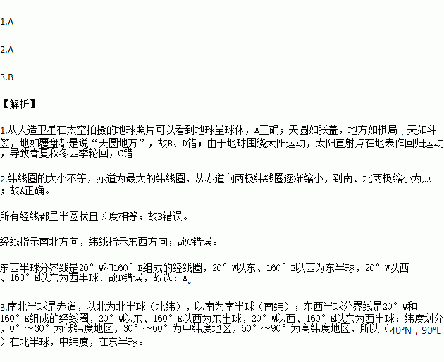 C. 东半球、南半球、中纬度 D. 西半球、北半球、低纬度
