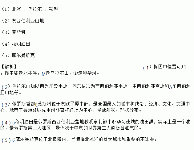 (5)位于北冰洋沿岸的常年不冻港G________ .