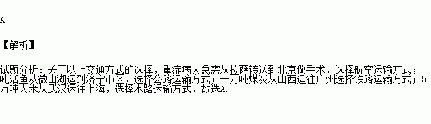 A.重症病人急需从拉萨转送到北京做手术,选择航空运输方式