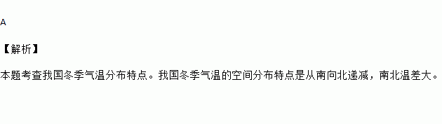 C. 从南向北递减,南北温差较小 D. 从南向北递增,南北温差较小