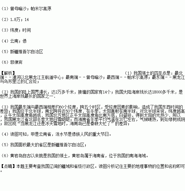 (3)µ±ºÚÁú½»¹ÊDZùÌìÑ©µØÊ±£¬º£ÄϵºÒÑÊÇ´º¸û´óæÁË£¬ÕâÊÇÓÉÓÚÎÒ¹úÄϱ±¿ç________¹ã£»ÎÒ¹ú¶«Î÷¾à5000¶àǧÃ×£¬¿ç¾¶È60¶à¶È£¬Õâ¾ÍÔì³ÉÁËÎÒ¹ú¶«Î÷________µÄ²îÒ죮