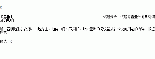 亚洲的大河多发源于中部,呈放射状流向周边的海洋,说明亚洲的地势特征是( )