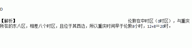 2012年伦敦奥运会开幕式定在当地时间12时(中时区)举行,在重庆(东八区)收看这场直播的时间是()