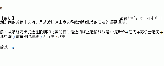 从波斯湾出发运往欧洲和北美的石油,正确的海上运输路线是( )
