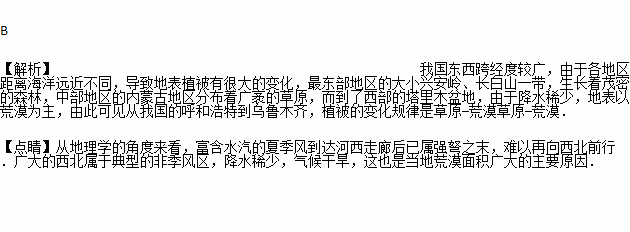 A. 草原 荒漠 森林 B. 草原 荒漠草原 荒漠