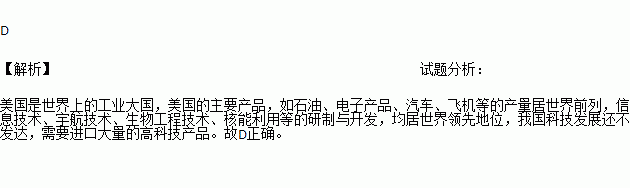 在我国与美国的经贸往来中,美国的下列产品中我国最需要进口的是( )