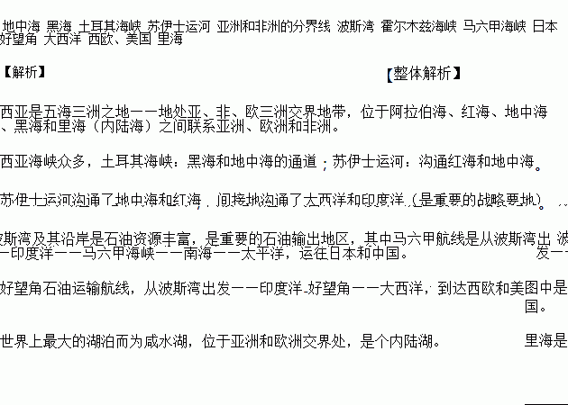 (3)图中③是________湾。该海湾的石油通过(___)海峡进入印度洋通过(____)海峡进入太平洋输往(____)(国家)