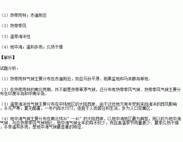 (1)A图所示气候类型为____________气候,该种气候类型的分布规律是____________。