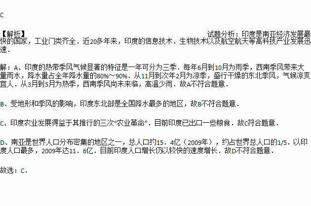 A. 印度每年分为旱季和雨季,1~6月为旱季,7~12月为雨季