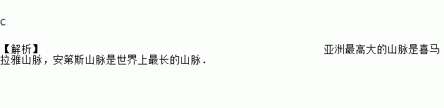 A. 乌拉尔山脉 B. 昆仑山脉 C. 喜马拉雅山脉 D. 安第斯山脉