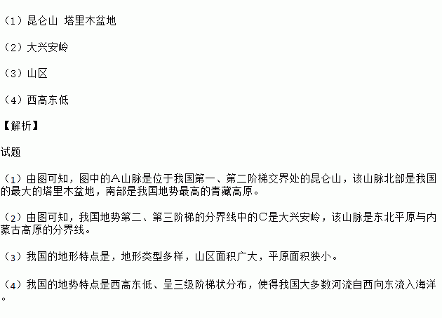 (2)我国地势二、三阶梯分界线是C 山脉。