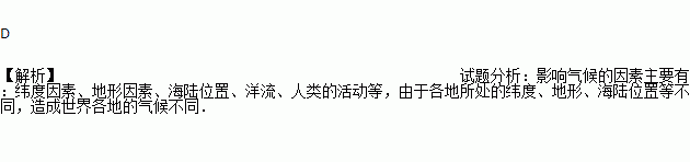 C. 各地区农业发展水平不同 D. 影响气候的因素不同