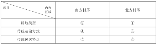 【题目】读我国北方村落与南方村落的景观图,填表比较它们的人文差异。(将合适内容的序号填写在下表相应的空格中,每个空格只能填一个序号,每个序号只能填―次)