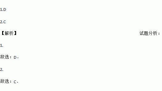 1.D 2.C 【解析】试题分析: 1. 故选:D. 2. 故选:C.